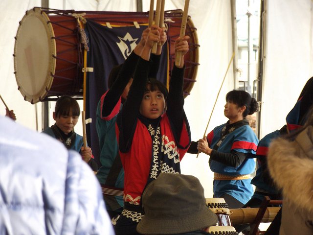 (写真:「新春打ち初め!栄ふるさと太鼓」の演奏から=2日午後撮影、640×480拡大可能)