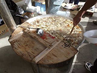 | 栄村はきのこの宝庫 | 会場で提供された「きのこ汁」 |