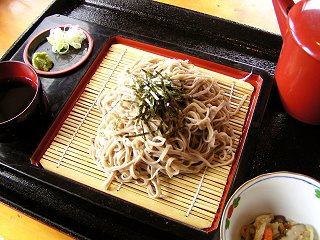 写真は、長野県と新潟県の県境近くにある「道の駅信越さかえ」内の食堂で提供されている「手打ちそば」(850円)です。蕎麦は、富倉(飯山市)などで提供される「富倉そば」と同じ「山ごぼう」(学名:オヤマボクチ)の葉の繊維をつなぎに使っているのでは…と思えるような独特な歯ざわりが特徴。かつおだしのつゆとのバランスもよく、何度味わってもやっぱり感動する逸品だったりします。