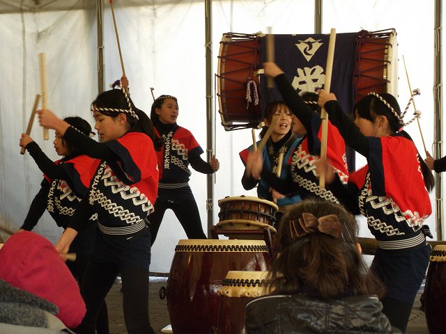 (写真:栄ふるさと太鼓のみなさんの演奏=2日午後撮影、640×480拡大可能)