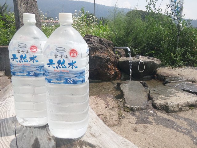 写真は、その飯山市の隣、下高井郡木島平村穂高に湧く加茂清水の様子。持参したペットポトルに清水の冷たい水を入れると、瞬く間に外側に水滴が付き、信州のおいしい水(ラベルは「富士山の天然水」ですが)のできあがり…に。