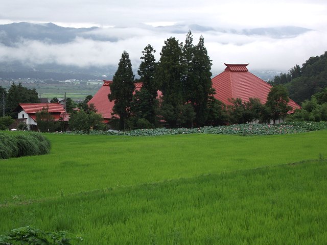 写真は、下高井郡木島平村の稲泉寺に咲く大賀ハスの様子。