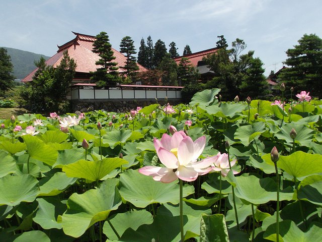 写真は「蓮寺」で知られる下高井郡木島平村の稲泉寺(地図)に咲く大賀ハスの様子。