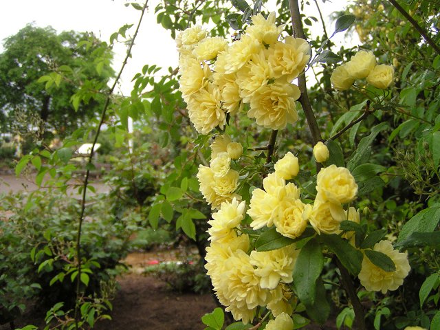 「なかのバラまつり」の開催に先立ち、23日に会場を訪れてみましたが、今年は開花が遅れているのか、黄木香バラが僅かに咲く程度で、ほとんどが蕾(つぼみ)の状態でした。