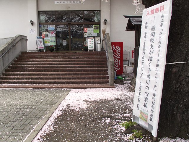 中野市一本木の一本木展示館(地図)では、4月23日から5月22日まで、「画文集『ささ舟カヌー千曲川スケッチ」発刊記念原画展 藤岡牧夫が描く千曲川の四季展」が開催されています。入場無料。