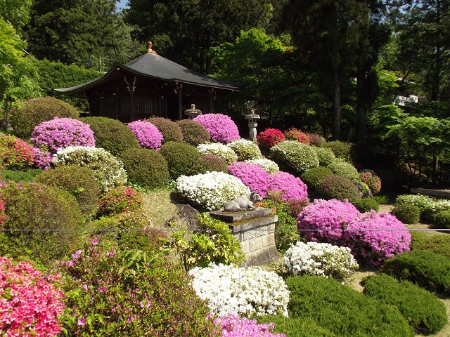 (写真:7分咲きになった霊閑寺のつつじ=18日午後撮影、640×480拡大可能)