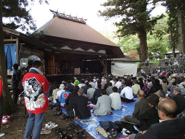 伊那市指定無形民俗文化財の中尾歌舞伎秋秋季定期公演が10月12日、伊那市長谷溝口の熱田神社(地図)で開催されました。