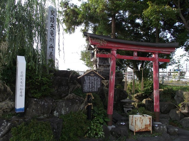 国道153号線(三州街道)と361号線が交わる伊那市入舟(地図)に残る天竜川の舟着場跡。 (写真=13日撮影、640×480拡大可能)
