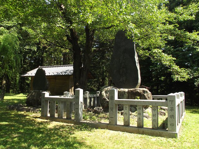 偶々(たまたま)水戸天狗党の盟主藤田小四郎大参謀武田耕雲斎等討幕をめざして西下の途次伊那に入る 時元治元年勘太郎王政復古こそ救国の大道なりと信じ敢然一行に加り加賀に到る 耕雲斎武運拙く遂に斬せらるゝに及び志半ばにして再び伊那に帰り余生を孝子節婦の訓育に勉め六十余年を以て此地に没す