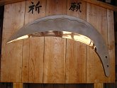 麓の前宮には、大きな「鉞(まさかり)」(写真右)が奉納されていたり、国道から続く大姥神社本宮までの林道には、金太郎の「産湯」といわれる小池が、さらに大姥山頂への遊歩道には、金太郎と大姥が住んでいたという「大穴」なども残っているそうですよ。そして管理人がもっとも驚いたのは、金太郎の父親はあの八面大王だった…ということ。
