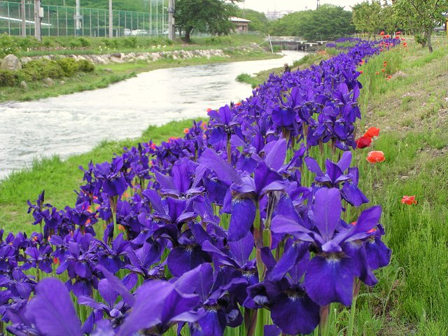 安曇野市明科中川手のあやめ公園(地図)で、青紫色のアヤメが咲き始めました。 (写真=16日撮影、640×480拡大可能)