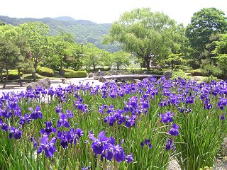 あやめは、公園内の一角にあり、鮮やかな紫色の花を咲かせています。