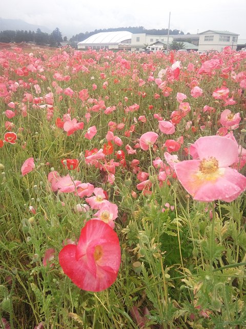 写真は18日に撮影した安曇野市堀金烏川にある「ほりがね物産センター」(道の駅アルプス安曇野ほりがねの里)近くの休耕田に咲くポピーの様子。 (写真=18日撮影、480×640拡大可能)