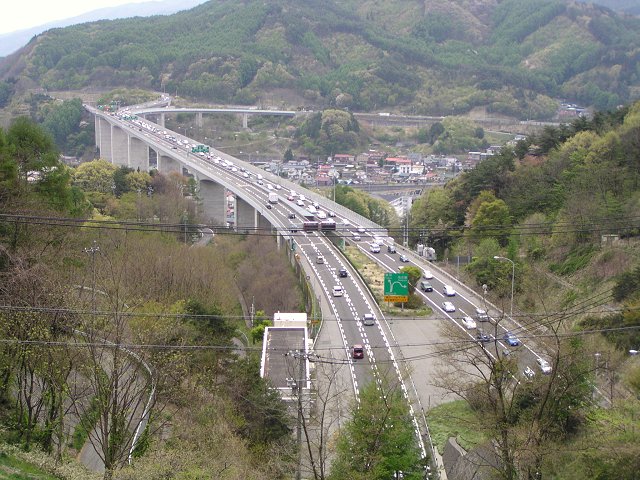 3日の長野県内の高速道路は、ETC搭載車の料金が上限1000円となったこともあり、2日に続き朝から渋滞が発生しました。写真は、長野自動車道岡谷トンネル付近から岡谷JCT方面を撮影したもの。左車線は中央道に流入する車、右車線は岡谷・塩尻方面に向かう車の列。 (写真=3日午前11時40分撮影、640×480拡大可能)