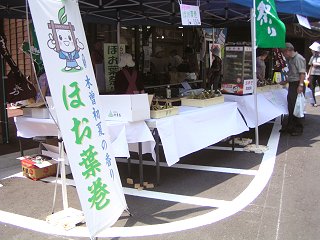 | 「つぶあん」「こしあん」2種類あるほお葉巻きもここでは1葉130円で販売 | |