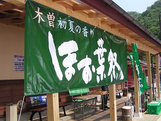 イベントは3町村合同開催で、5日の道の駅大桑(大桑村)から始まり、12日は寝覚め床会場(上松町・臨川寺境内)と木曽町内4会場(木曽福島支所前・道の駅三岳・道の駅日義木曽駒・農産物直売所木曽市場)で、最終日の13日は木曽町内4会場で行なわれます。 (写真=12日撮影、640×480拡大可能)