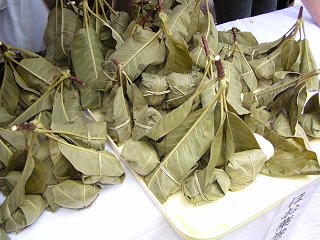 「ほお葉巻き」とは、ほお(朴)の葉に、あんをほおの葉で包み蒸した、この時期ならでは和菓子。6個1セットで、お値段はおよそ900円ほど。