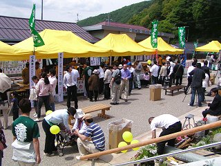 木曽町の山村代官屋敷前で「ほおは祭り2008」が開催されています。「ほお葉」とは、朴葉にご飯を包んで持ち歩いた伝統的な食文化で、現在は「ほお葉巻き」や「ほお葉寿司」などとして販売されています。会場では、「ほお葉巻き」や「ほお葉寿司」「ほお葉ちまき」などの販売ブースが設けられているほか、大道芸などのアトラクションも行われています。福島会場は8日まで。 (写真=7日撮影)