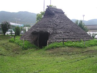 東筑摩郡朝日村にある熊久保遺跡(地図)は、縄文時代前期から後期にかけて、周辺一帯に形成された集落群の遺跡。整備された公園内には、縄文時代の竪穴式住居も復元されています。 (写真=1日撮影)