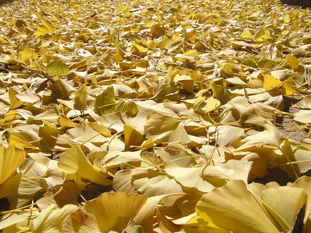 ほとんどの葉が落ち、木の下には黄金色の絨毯が一面に広がっていました。