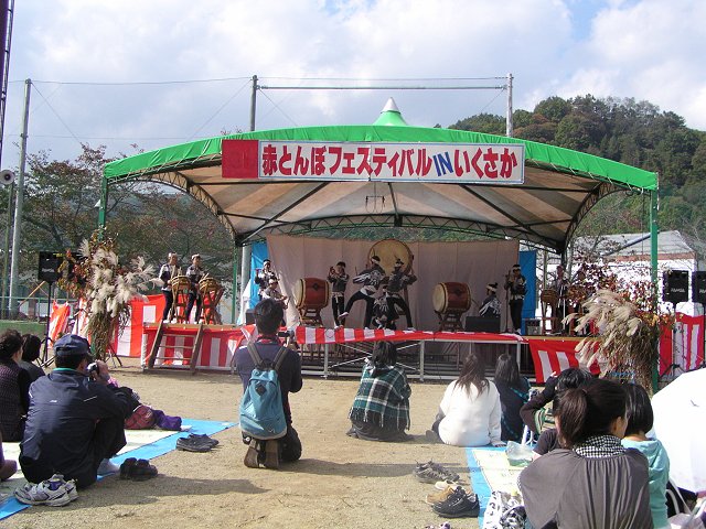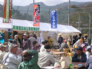 東筑摩郡生坂村の生坂村総合グランド(地図)で、17日と18日の2日間、「赤とんぼフェスティバル in いくさか」(主催:赤とんぼフェスティバル実行委員会)が開催されました。17日はあいにくの雨降りとなりましたが、18日は青空の広がる天気となり、会場となったグランドでは地元料理を味わう人たちで賑わいました。