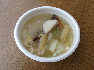 訪ねた時間がちょうどお昼と重なってしまい、新そばまつりの会場である「そば処さかい」の前は、大勢の家族連れで長蛇の列といった状況になっていました。このため、今年はそばは諦め、無料で振る舞われたいた「タケノコ入りきのこ汁」を頂くことに。小さなうつわでしたので、ちょいと味わうだけで済むか…と思いきや、具もたくさんでこれだけでも主食になるくらいの大サービス。ふーふーいいながら、しっかり頂いてきました。ごちそうさまでした。