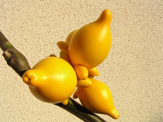 5日付市民タイムス東筑摩版に掲載されていた、果実がキツネ顔していることからフォックスフェイスとか、カナリアナス、またはツノナスともよばれるキツネナスを、筑北村坂北にある農産物直売所・坂北やさいBOXの皆さんにご手配頂き、実物を手にすることができました。