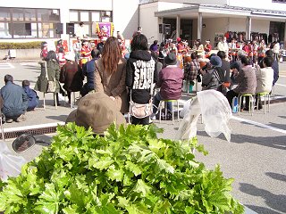TOPの写真は電動三輪車の荷台に野菜を満載して、ステージで行われている義民太鼓の演奏に聴き入っているおばあちゃんの後ろ姿です。軽トラ市の野菜がきっと安かったのかもしれませんね。
