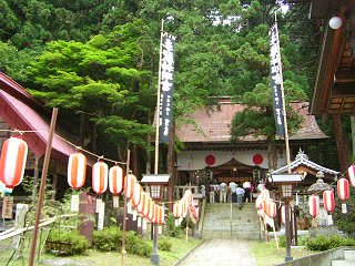 27日、東筑摩郡麻績村の麻績神明宮で例大祭(祇園祭)が行われ、地元の小学生の皆さんによる浦安の舞などが奉納されました。また、境内の社務所では、寛政3年(1791)寄贈の青銅製のこま犬や、懸仏(かけぼとけ)などの宝物が初めて一般公開されました。 (写真:麻績神明宮=7月27日撮影)