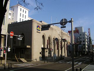 この建物は、第一勧業銀行と富士銀行が合併し発足したみずほ銀行の支店統廃合により、平成17年1月から空き店舗となっていましたが、大阪市に本社のあるレイコフグループが取得し、ホテル(名称予定:ベストウェスタン松本)を併設したブライダル施設をオープンさせる準備を進めていました。しかし、3月20日、レイコフグループが大阪地裁に民事再生法の適用を申請。オープンを危ぶむ状況となりましたが、ブライダル施設を運営する株式会社ブライズワードがこれを引き受け、ホテル名を「ホテルアルモーニビアン」と改称し、予定の4月1日にオープンすることとなりました。