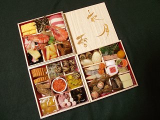 | ・ 穴子八幡巻3切 ・ 松笠いか白焼2個 ・ 笹団子2個 ・ あい鴨ロース3切 ・ 葉付金柑甘煮1個 ・ 鰆西京焼き2切 ・ 金時人参ねじり梅2個 ・ 鮭小川巻3切 ・ 七福巻3切 ・ 手綱こんにゃく2個 ・ 蛤串2本 ・ 手まり麩2個 ・ 椎茸旨煮2個 ・ 寿高野含め煮2個 |