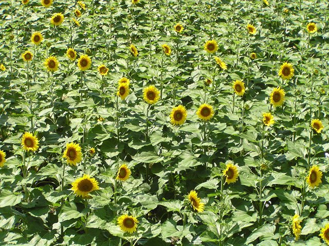 諏訪市中洲神宮寺の諏訪市博物館東裏にある休耕田(地図)では、まもなくひまわりの大輪が見ごろを迎えます。