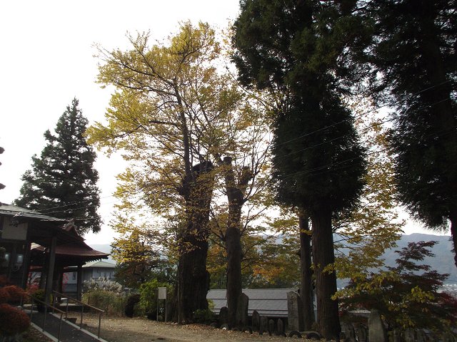 諏訪市四賀神戸にある地蔵院(地図)の境内にあるカツラ。