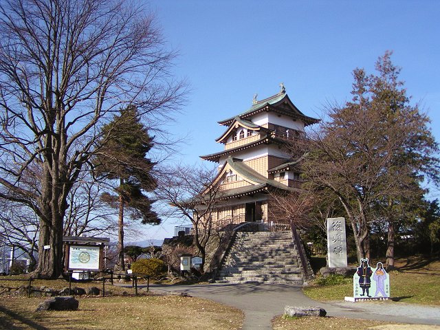 諏訪湖に突き出ていたことから「諏訪の浮城」とも呼ばれた高島城(地図)は、豊臣秀吉の部将であった日根野織部正高吉によって築城されたもので、江戸時代には、諏訪藩主の居城となり、中山道や甲州街道の往来を取り締まる任に就きました。維新後の明治8年(1875)、政府により天守閣が撤去され、翌9年5月、城跡は高島公園として一般に公開されました。現在の天守閣は、昭和45年に復興されたもので、三層の天守閣内部は諏訪藩に関する資料を展示した博物館となっています。