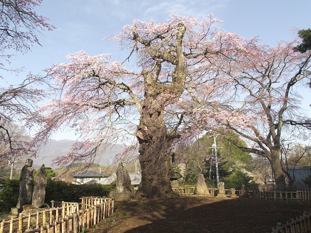 諏訪郡富士見町田端(地図)に咲く田端鼎談桜(たばたていだんざくら)の様子。
