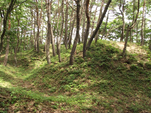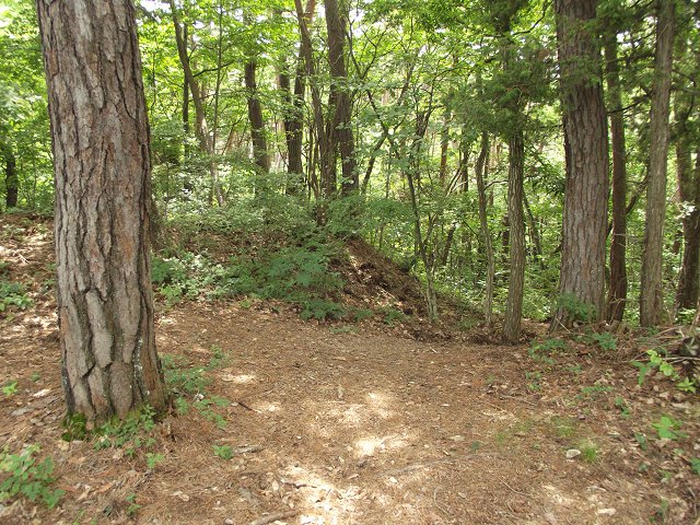 山城には、土塁(土を盛り上げて作った土手)と堀切(水のない溝状の堀)に囲まれた曲輪(平らに整地した場所)がいくつかあります。おそらく、掘っ立て小屋や柵などの簡単な建物や防護施設だけで、国宝の松本城や姫路城のように立派な天守閣のんかる江戸時代のお城とは異なります。