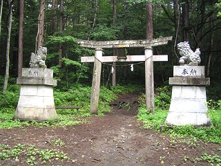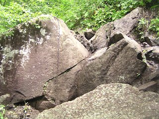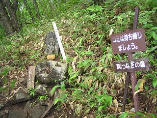 | 登山道にある天狗の硯石 | 戸隠中社からの登山道との分岐 |