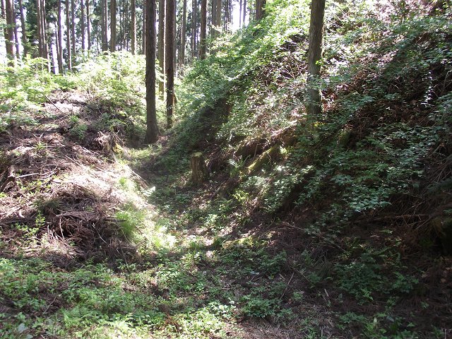 山頂の城を守るために、髻山の北山腹に深い堀切(ほりきり)がめぐらされている。掘った土を山ろく側へ盛り上げて土塁(どるい)にしているため一段と深くなっている。掘にさえぎられた軍勢は登山道に集まるため、山城の軍勢は登山道の守りに集中できる工夫である。上杉謙信はこの堀に軍馬を隠しておいたといわれ「馬かくし」とも呼ばれている。