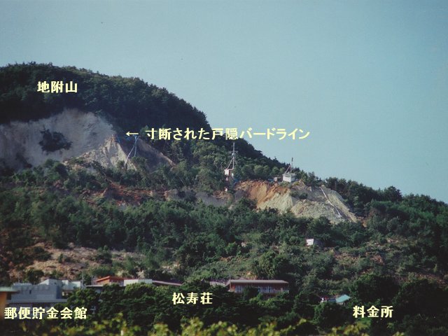 The large-scale landslide occurred on the southeast slope of Mt.Jizuki on July 26,1985. The sliding mass flowed on to the Yuya apartment block and Syojusou sanatorium.26 precious lives were lost and 64 homes were totally or partly destroyed. (略)