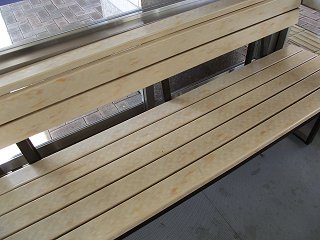 | 木目調の素敵な長イスも 座ってみると結構冷たい ![]() |