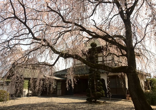 長野市篠ノ井杵淵(地図)にある武田信繁(武田信玄の実弟)ゆかりの寺・曹洞宗松操山典厩寺( Wikipedia )の境内に咲くシダレザクラ。