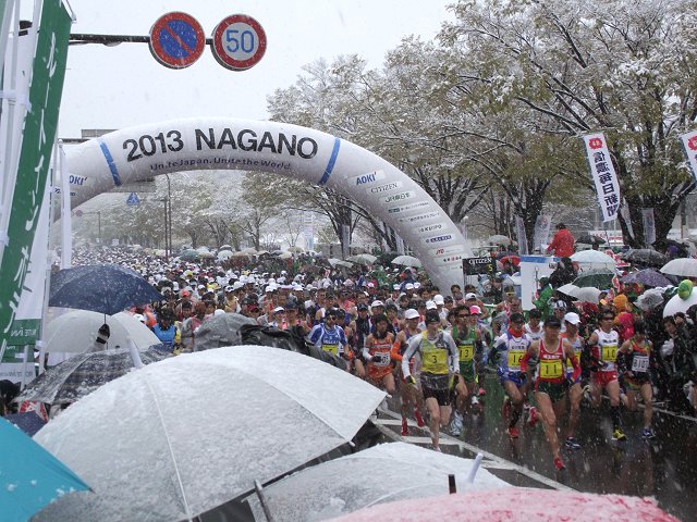 (写真:長野運動公園からスタート=21日午前8時30分、640×480拡大可能)