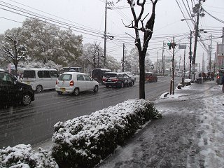 | 気温0.2度・積雪3cm(運動公園前) | 準備中の選手たち(体育館) |