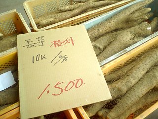 松代町東寺尾の長野松代農業センター直売所では、8日から恒例のながいも祭りが始まり賑わっています。人気の自家用長いも(規格外)は幾らだろう、と訪ねましたら、10キロでなんと!1500円という安さ。会場では、贈答用長いもの販売も行われています。風邪予防に、滋養強壮(笑)に、貰って喜ばれる長いもは、いかがでしょうか。 (写真=15日撮影)