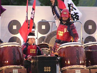 | 幸村に扮した甲冑姿の打ち手が登場 (真田陣太鼓) |