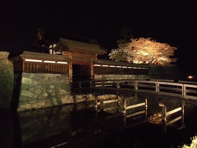 長野市松代町にある松代城跡(地図)の夜桜。