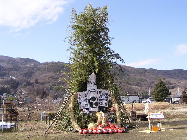 長野市内でもこうした「どんど焼き」が見られるのはこの地区だけで、平成7年に県の無形民俗文化財に指定されました。 (写真=11日撮影、640×480拡大可能)