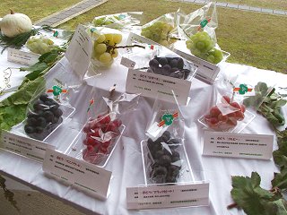 | 長野市で収穫される果物(ぶどう) | 会場で試食した「りんごおこわ」 |