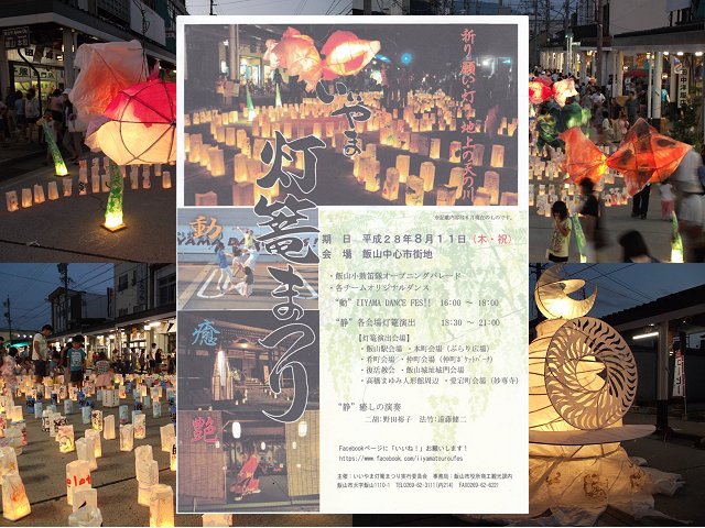 商店街を灯篭で彩るイベント・いいやま灯篭まつりが、11日(木・祝)に開催されます。灯篭の演出は午後6時30分で、飯山駅や本町(ぶらり広場)など8ヶ所で予定されています。詳しくは飯山市ホームページをご覧ください。