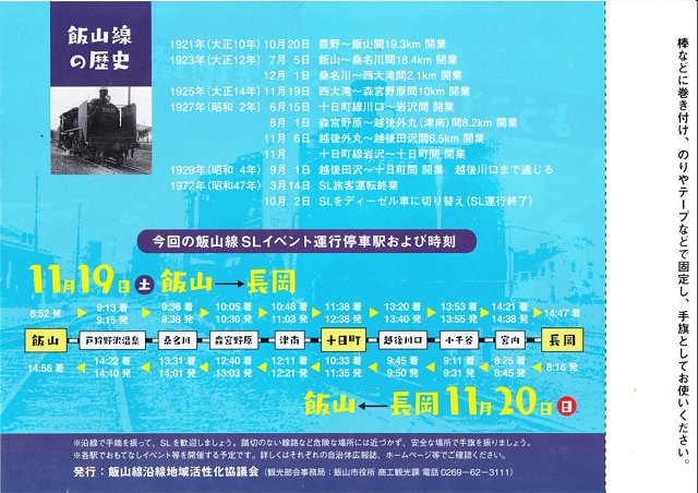 JR飯山線では、11月19日(土)と20日(日)の2日間、C11(予定)によるSLイベント列車の運行が予定されています。